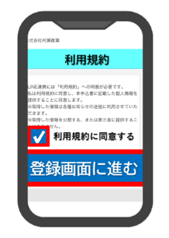 「会員約款に同意する」にチェックして、「登録画面に進む」ボタンをタップ
