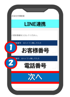 ②弊社にご登録の電話番号を入力し、「次へ」ボタンをタップ