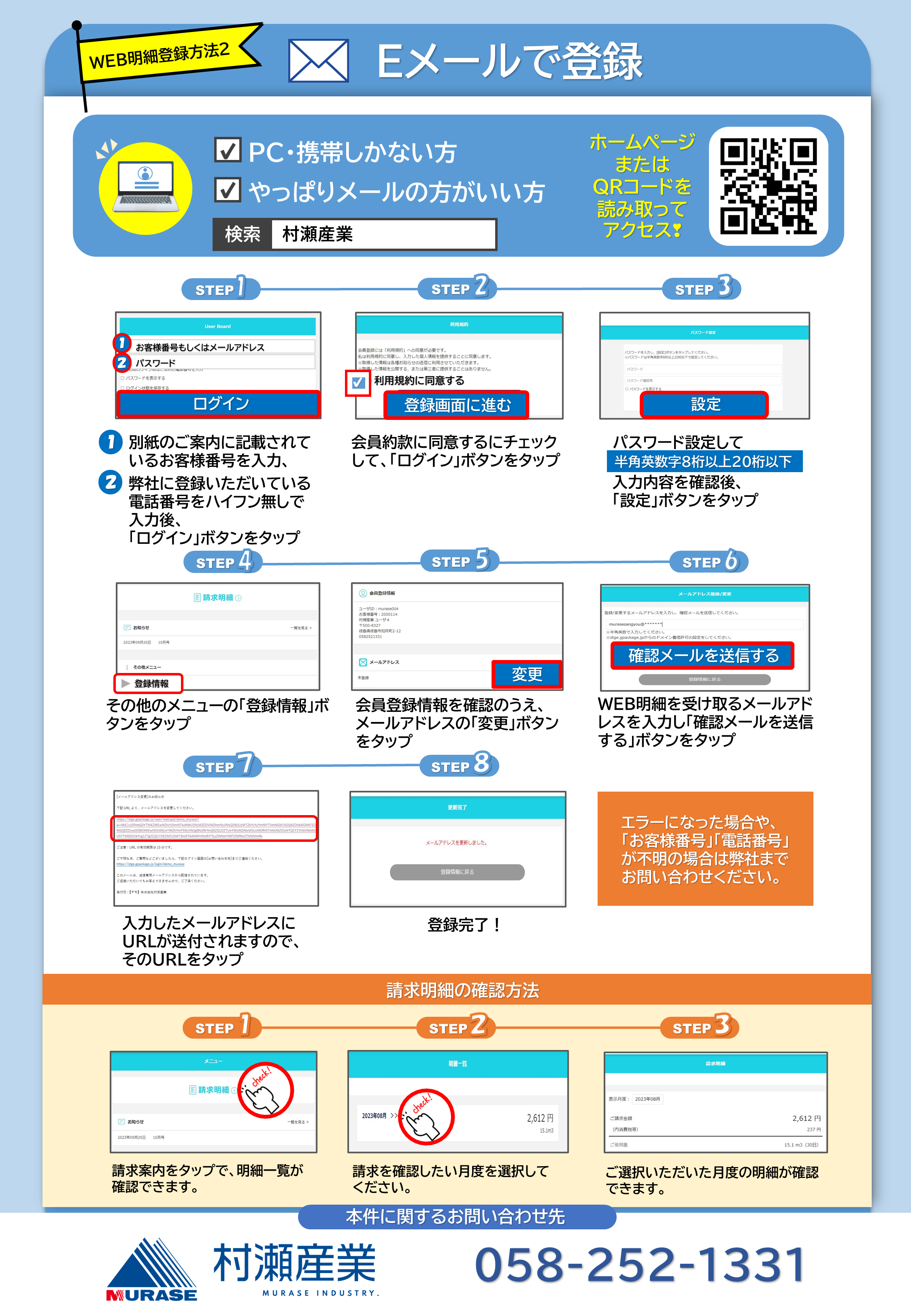 村瀬産業のLINE公式アカウントと連携することで、LINEでweb明細が受け取れます。